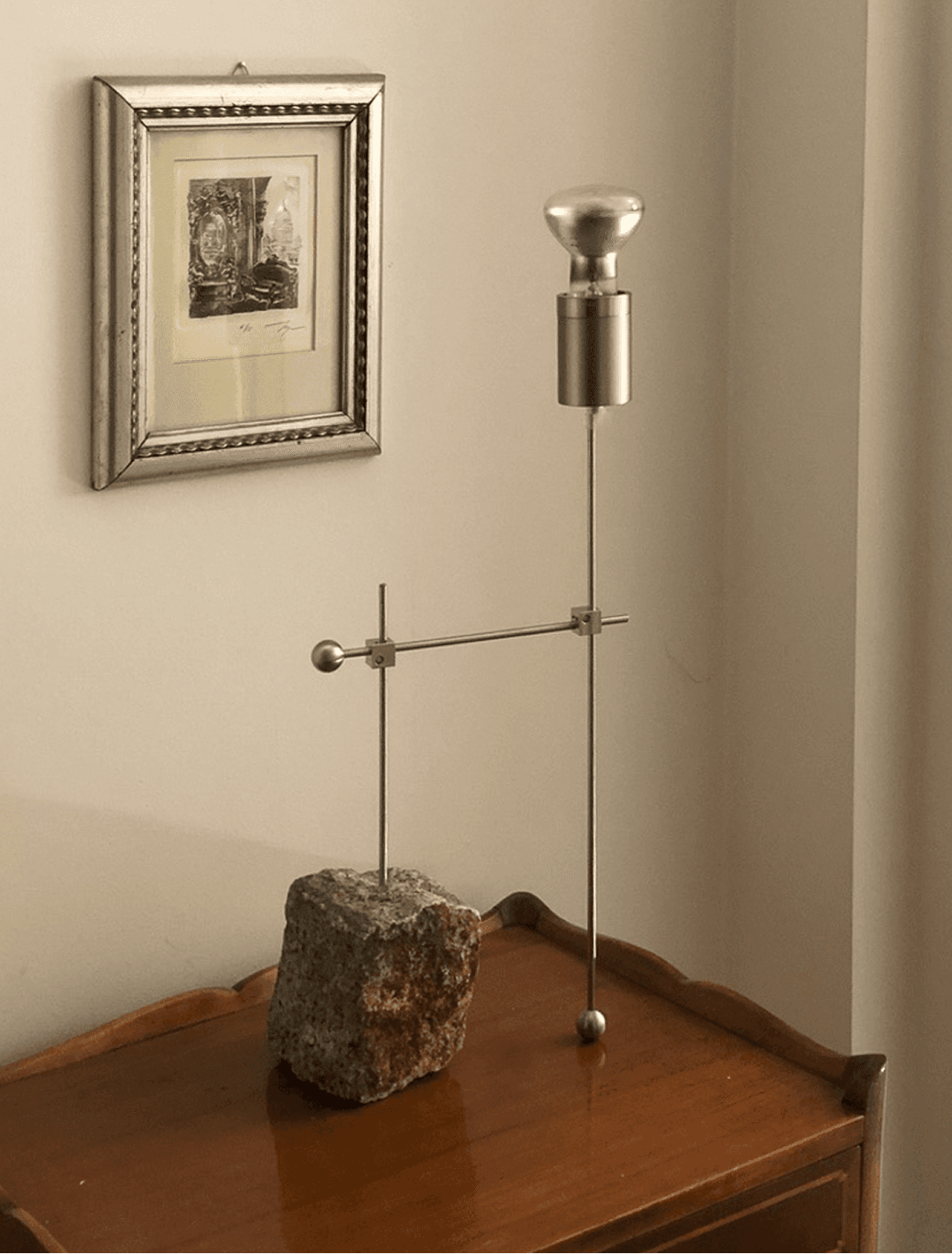 Each piece differs slightly from the others- in the type and shape of the stone, and consequently in the proportions and material selection of the lampshade.